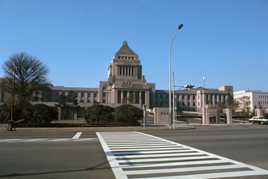Construction of the current building began in 1920, although plans date back to the late 1880s. The Diet met in temporary structures for the first fifty years of its existence because there was no agreement over what form its building should take. German architects were called in in 1886-1887, but political intrigue kept either of the proposed designs from being built. An American was also called in, but a change in government brought that project to a halt as well. Finally, a joint German-Japanese design for a temporary structure was approved. The building, a two-story, European-style wooden structure, opened in November 1890 on a site in Hibiya.