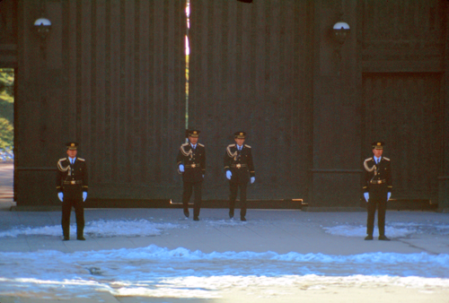 It would have been very neat had today been one of the special occasions on which the palace grounds are open, but at least we got to see part of the "changing of the guards". I took one picture before and one picture during the ceremony: