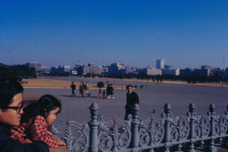 I have two more pictures taken here in the broad plaza east of the Imperial Palace grounds, and I have to thank the two very obliging Japanese women who allowed me to take them. After a comedy of errors, including a film change, I finally got a good shot of the two girls in real native dress.