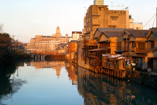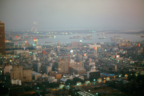 Beyond the ships, you can see some of the buildings that have been built on landfill in the bay. There were articles in Fortune, I recall, some time ago, about the Japanese efforts to expand the city of Tokyo by creating land in the middle of the bay. This has apparently been done. Are these buildings constructed on compressed garbage with a layer of soil?