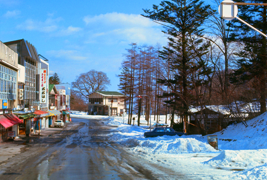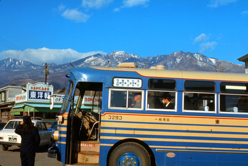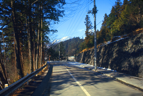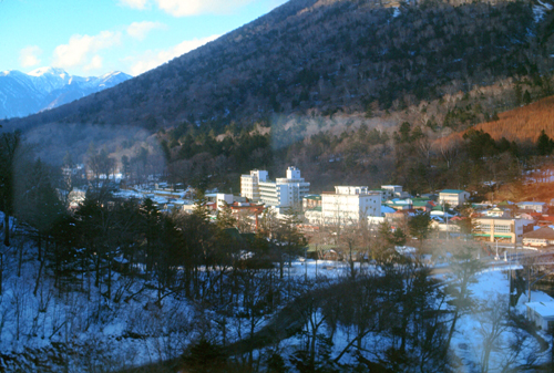 We were riding in a full-length bus, and at each of the curves we were not sure that the bus would stay on the road. It did, but just barely, leading us to believe that the road was specifically designed to accommodate the bus, but nothing larger or longer. Whenever the bus came to a turn, the driver would calculate it almost exactly, turning the bus in as wide a radius as possible to keep from hitting the guard rail. Those of us in the back of the bus could only watch helplessly as the guard rail whizzed past our window, the only thing between us and quite a drop. Dan and I were a little nervous, but the Japanese on the bus, most of them young and obviously on their way to go skiing, were nonchalant.