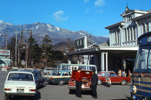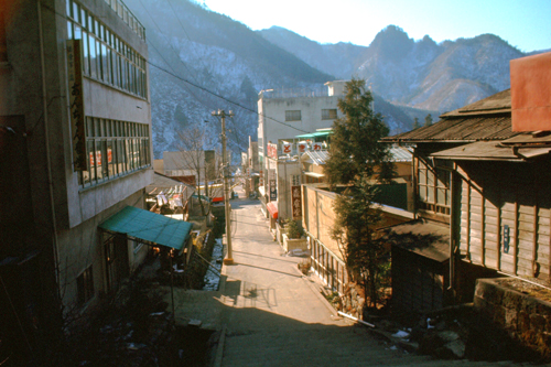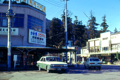 I might mention two things. First, there was a little tramway that took us up to the falls access point and the observation platform that provided great views of the town and the lake. And there was a separate cable car up to the Akechidaira Observation Point. I probably didn't mark these correctly, as we were there fifty years before the aerial view was probably taken. (For all I know, the area has completely changed since we visited.).