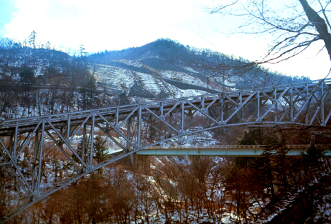 As we ascended the steep, curving mountain road to go over the crest of the mountains to Lake Chuzenji, there was certainly a great deal of scenery to look at out the windows of the bus. At one point, we saw this bridge and also an old tramway that was closed in 1970.