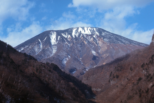 The ninth picture in the slide show is another view of Mt. Nantai. It is 8197 feet high, and is sometimes called "Kurokami-yama" (black-hair mountain) or "Futa-ara-san" (two-storms mountain). There is a Shinto shrine at the foot of it, and the spirit of the mountain is enshrined in it.