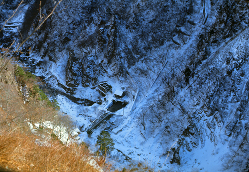 Second, from my pictures and from my memory, I think the aerial view puts Kegon Falls a bit too close to the town, but, again, that hardly matters here. In any event, you can see the course of the Daiya River coming into Lake Chuzenji, and I suppose it really doesn't matter much exactly where along that course the falls were/are actually located.