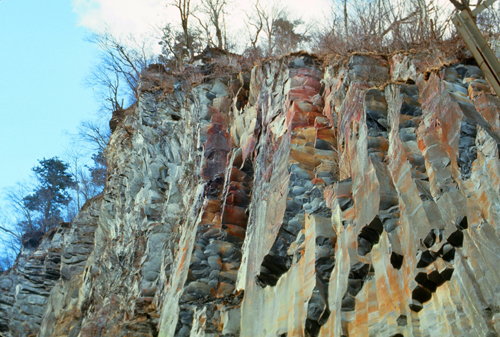 Looking back up from the observation platform, the way the rocks have been broken off is quite interesting, and presents a good example of perspective. It almost appears as if the whole mountain is a giant crystal.