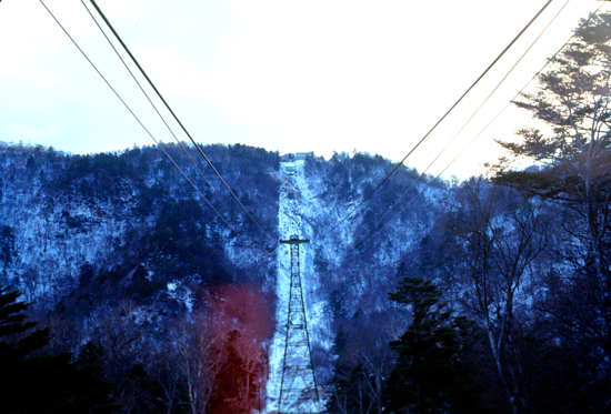 During both my trips to Japan, I was going to be introduced to a lot of transportation options that I'd never experienced before, and this aerial tramway was one of them. (By 2021, as this page is being created, these would all be old hat, but on this trip they were all new to me.)