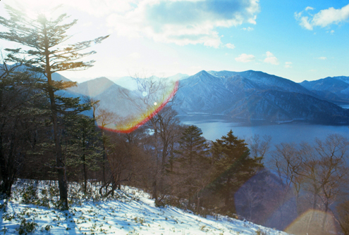 The small resort town of Chuzenji is nestled along the lakeside just below Kegon Falls. The town is still pretty much closed up for the winter; its "season" is from mid-April to the end of November. During the summer the hotels are always full, and the lake itself is dotted with numerous pleasure boats. We took a few pictures of the area from here, and there are clickable thumbnails for these pictures below: (the fourth one is Chuzenji's largest hotel)