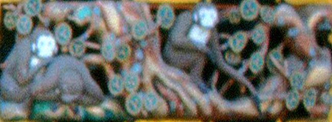 Below are extracts from the picture at right, blown up so you can see more detail. I apologize for the quality of the enlargements, but considering that the original picture was a slide, and that it was scanned a quarter-century after it was taken, and then small segments were digitally enlarged by a factor of 10, the result really isn't half bad.