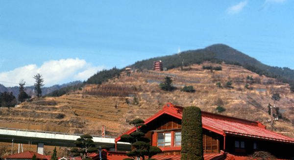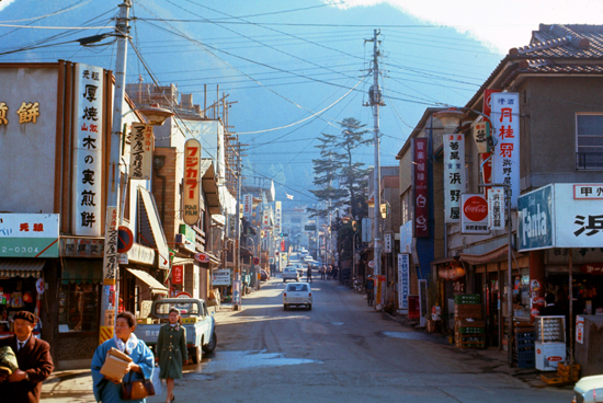 At the Otsuki station, we changed for the Fuji Sanroku Electric Railway to Kawaguchiko. The railway was an old one, really rather decrepit. Here in 2021, when I went online to find out a little more about the railway (not having recorded much about it in 1971, I found that the railway was just now in the news, and I read an article about it on japanstation.com. You might be interested in what I found.