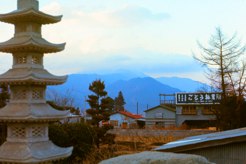 For lunch, we stopped in a typical Japanese restaurant, and had one of the best meals yet. I had sweet/sour pork, with all sorts of exotic vegetables in it, and Dan had chicken and almonds. Those, incidentally, were the only two tables in the restaurant, along with five small stools at a counter. The place, though small, was immaculate, and the food was delicious. The wall heading unit kept us warm, though it was quite cold out.