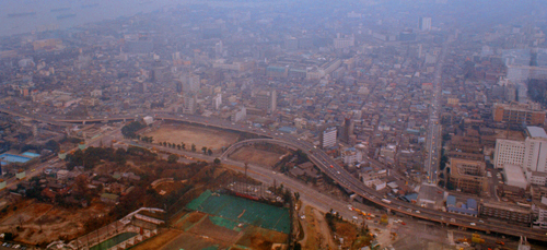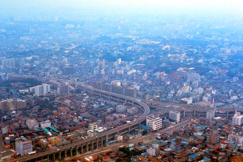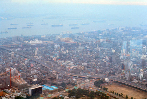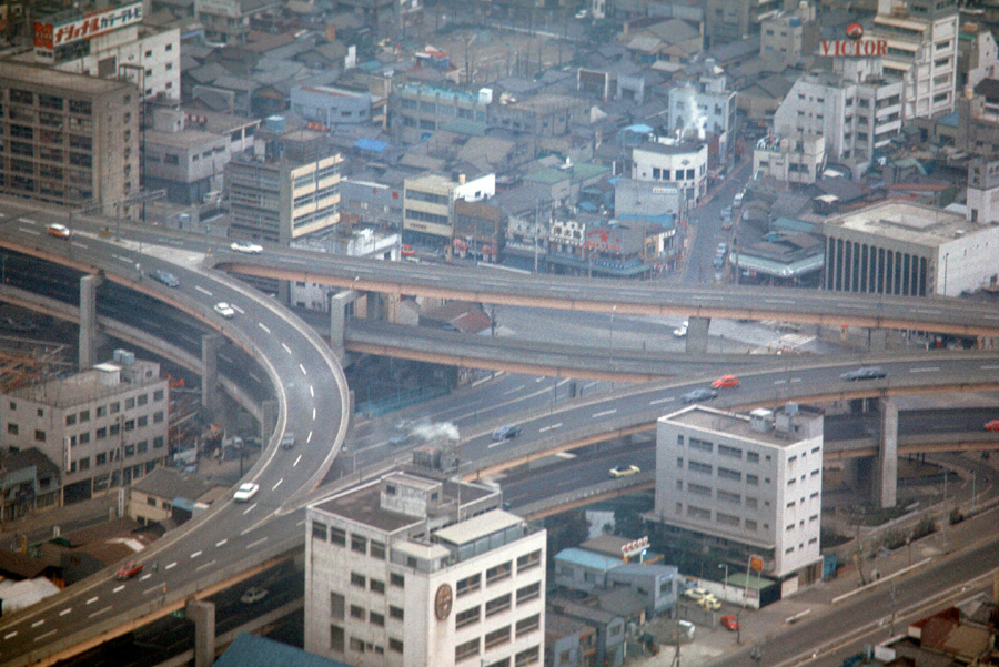Now you can see clearly that while building (1) was a lone development fifty years ago, it is now dwarfed by the many, many highrises that have been built in the same general area. My guess would be, of course, that in addition to the new highrises, most of the lowrise buildings, shops, and stores may well have been replaced or renovated in the half-century since my visit to the tower.