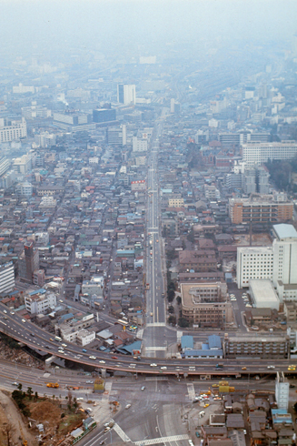The next morning, the 15th, we got up early and packed our stuff, mailed slides, and such. Film and processing for this trip ran about $70. We checked out of the Sanno in preparation for an 1800 flight from Yokota air base back to Kimpo, and checked our bags there in the hotel. Then we decided to make another trip over to Tokyo Tower to go up to the higher observation area that we were not able to visit earlier in the trip. Unfortunately, the day was hazy, and so the pictures are not outstanding.