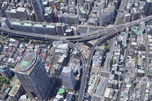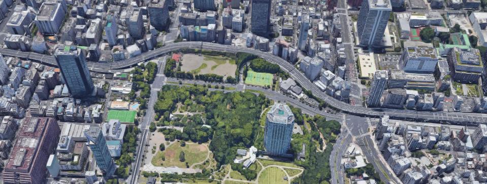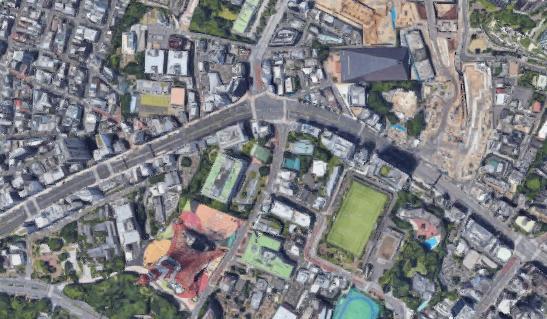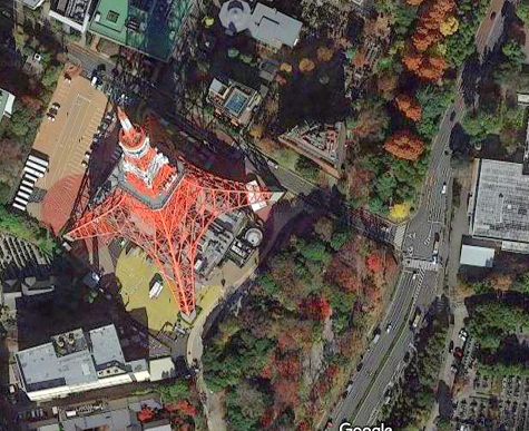 For the rest of the pictures, I'd like to do something interesting since I am creating this page in 2021. I have looked at the aerial view of the area around the Tower that is available to me now. That view is below: