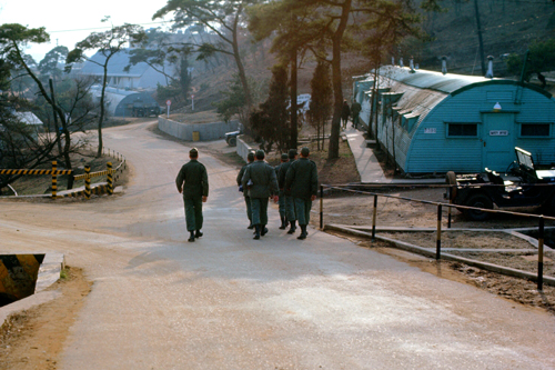 Beginning in 1953, the United States 7th Infantry Division used the camp as its main garrison during its stay in-country from 1953 until this year. During that time, the 2nd Division worked with it in first the defense of the northern border of South Korea and later, after the "end" of the conflict, in the monitoring of the border and the continued training of the South Korean forces. Over the years, as the threat of invasion diminished and life north of Seoul became more routine, the need for two division here diminished. Since the beginning of the year, we'd heard rumors that one or the other of the divisions was to be relocated from Korea, and in February it was learned that it would be the 7th Division that would rotate back to the United States. With that decision made, it was also decided that the Headquarters Second Division would move to Camp Casey, as the facilities there were much better than at Howze.