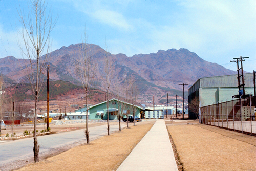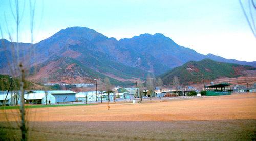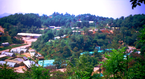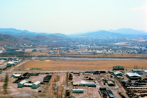 The aerial view at left, of course, is from the present day. My own photographs and recollections of Camp Casey are of a modern, but much smaller installation that what you see here. Marked on the map are numerous facilities which have been built over the years to accommodate not only the increased usage of the camp (as numerous outlying camps were closed over the years) but also the change in the general situation in Korea. In the years after my departure, the relaxation of tensions (but not without intermittent spikes) between North and South has led to a corresponding relaxation of military life in the South. For example, servicemen are now, generally, allowed to bring their families with them on tours in-country. Many do, even though there is little housing available on post. Korea has advanced so much that modern apartments are now not difficult to find, even in small towns like Dongducheon.