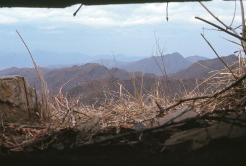 About an hour away by bus, Camp Casey had been I Corps HQ, and then Seventh Division HQ. It was quite a large place, with many more facilities than Howze. This was because in the Second Division area, the resources of the Division were spread out among so many small compounds, while at Casey everything was concentrated into one place. The personnel who moved seemed to enjoy it. I had gone to visit Lieutenants (Theron) Lott and (Bob) Cavendish, and we decided to go mountain climbing- the one in the background.