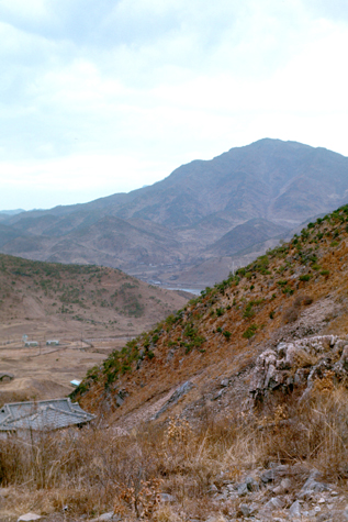 So we walked off to do some hiking, this being one of the nicest days so far this spring. Camp Casey is entirely fenced, but in addition to the main gate, there are smaller manned gates around the perimeter, and we headed off through the North gate to the mountainous area north of the camp.