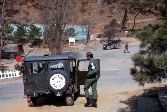 Now, this is not nearly as dangerous as it sounds. Jeeps are ubiquitous in this area of Korea, and civilians think nothing of them- whether they are driven by US soldiers, Korean military, or KATUSAs. And the jeeps are from the general Motor Pool, and so have no markings on them that would indicate that either of them are carrying anything particularly valuable. But the MPs do have their orders to try to avoid stopping, and they like to take those orders seriously, as it gives them license to use their sirens and horns, and to brandish their vehicle-mounted artillery and generally play the role of soldiers on a mission.