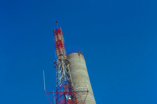 What DOES appear looks to be the tower under construction. In the present-day pictures of the structure, there is a lower section that is, essentially, a round tube, and I am pretty sure, looking at this picture, that the round concrete structure you see here is the N Seoul Tower's lower section. So I think the Wikipedia article is wrong; looking at the current pictures of the tower, I would guess that it is going to take another year or so to complete.