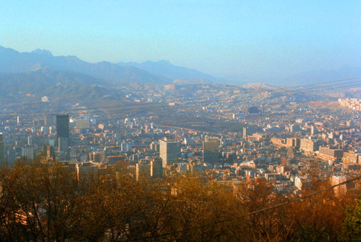 Namsan Mountain ("South Mountain") is an 860 ft. peak in the Jung-gu district of south central Seoul. Although known as Mongmyeoksan in the past, it is now commonly referred to as Mt. Namsan. It offers some hiking, picnic areas and views of downtown Seoul's skyline. The N Seoul Tower is located on top of Mt. Namsan.