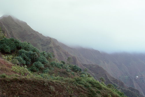 Along this side of the island, a highway parallels the shore, and it lies between the ocean on one side and these steep mountains, the Koolau Range, on the other.