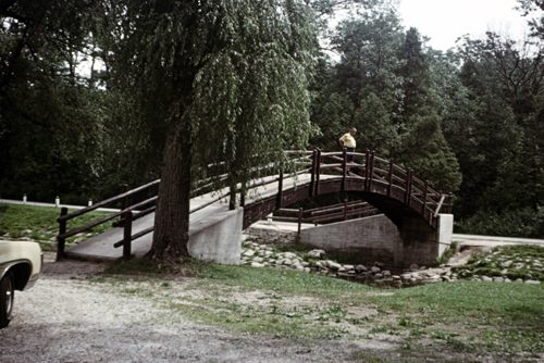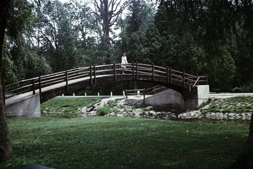 I think I remember the footbridge in the pictures below as being out on the causeway between North Muskegon and Muskegon proper. It seems as if Mom and Dad stopped there to photograph each other on the bridge;