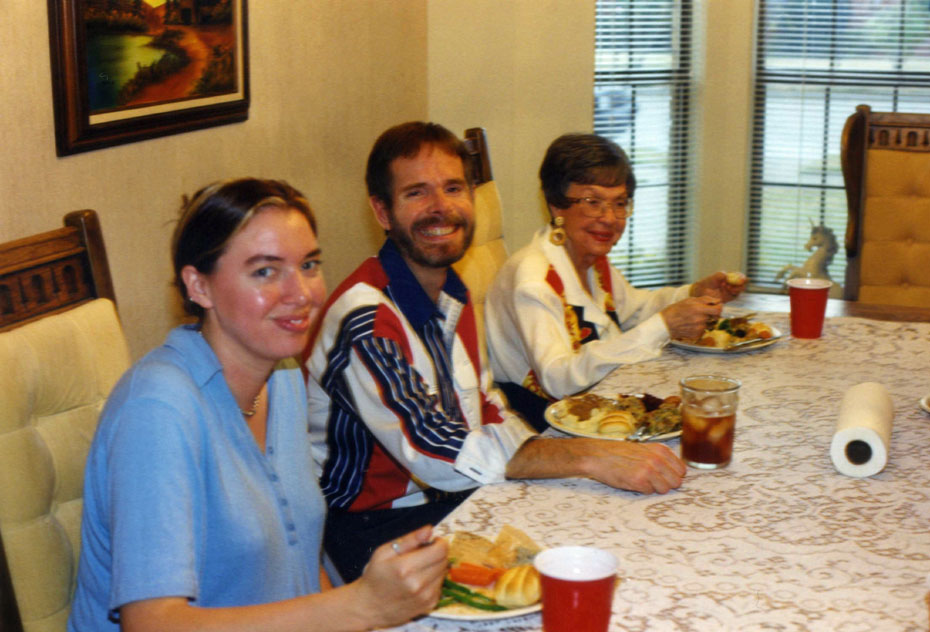 Some of us contributed dishes to the effort and Lowery laid everything out in the kitchen of their house in Hackberry Creek and we served ourselves- buffet style. Fred took one other good picture of Jeffie, myself and my Mom.