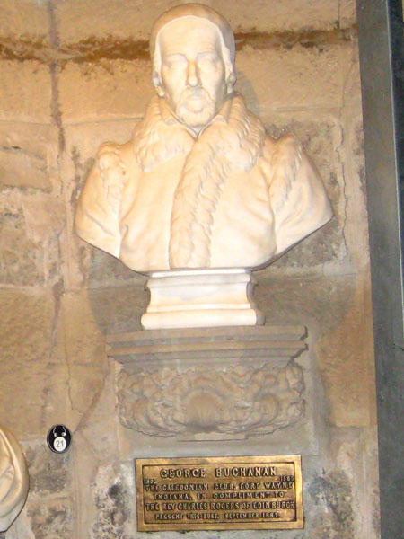 George Buchanan was a Scottish historian and humanist scholar. He is thought to be the most profound intellectual in sixteenth century Scotland. His ideology of resistance to royal usurpation gained widespread acceptance during the Scottish Reformation. Buchanan grew up poor, but his uncle, James Heriot, saw to his education in Paris. On Heriot's death, he returned to Scotland and graduated from the University of St. Andrews in 1525 and became a professor at the prestigious Sainte-Barbel school. He began to take a critical stance against Catholicism, coming to the attention of James V, who engaged him as tutor to one of his natural sons. His writings made him a target of the Franciscan order and he was fled to London and then Bordeaux during the Lutheran Persecution in 1539.