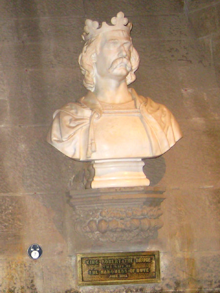King Robert was gravely ill by this time and died at Cardross on 7 July 1329. His body was buried in Dunfermline Abbey. At his request, his heart was taken on a Crusade by James Douglas. In a fight against the Moors in Spain, Douglas was killed and the embalmed heart was returned to Scotland. It was buried in Melrose Abbey, and the stone marker is inscribed (in Scots) with "A noble hart may hae nae ease, gif freedom failye" (Eng. "A noble heart may have no ease if freedom fails").