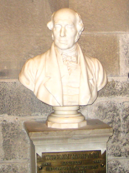 Born in Ayrshire, by trade Murdoch was a millwright and was at one time an associate of James Watt. He was a prolific inventor, creating a steam-driven tricycle, a steam cannon and a worm-driven cylinder boring machine and underwater paint for ships. He spent 20 years in Cornwall (and changed his name to Murdock to suit the local pronunciation).