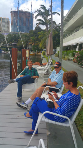 We enjoyed Steve's parents' visit very, very much, and we are pretty certain they did as well. We took quite a few other good pictures during their visit, but we've narrowed them down to just a half dozen- taken at the dock, in the condo, and while we were walking on Las Olas. Here they are: