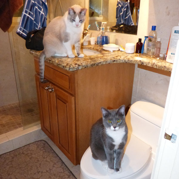 Fred has also gotten most of our cats to drink out of the faucet in either the bathroom here or at home. This is fun to watch (and I am sure you've seen YouTube videos of cats doing that) but it can be something of a nusiance when every time one of us goes into the bathroom one or more cats are always on the counter waiting their turn.