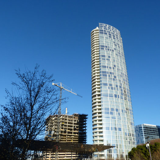 The Museum Tower's glass has reflected an undesirable glare into the nearby Nasher Sculpture Center, whose architect Renzo Piano had specifically designed its roof to direct appropriate indirect sunlight into the galleries, based on the arc of the sun across the sky. Artist James Turrell considers his work Tending (Blue) to be effectively destroyed by the glare, and the museum has closed the interior of the sculpture to the public at his request. Peter Walker, the landscape architect who designed the Nasher's sculpture garden, has characterized the glare as "an attack on the garden and on the building and on the art." As of 2015, Museum Tower's owners had decided they are not responsible for the glare created by the tower, although there are ongoing efforts to find ways to minimize the glare without destroying the views from the residences. Stay tuned.