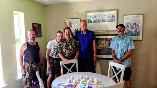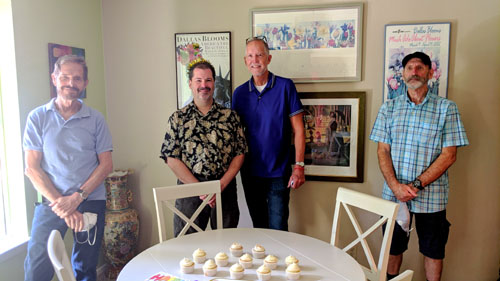 Other than visitingtwo couples here in my townhome community, Fred and I have been to only one private home since we returned from Florida in March and began sequestering in place, and that house has been Steve and Mario's house out in Hurst. We were here last month for Mario and Fred's birthdays, and we are here this month for Steve's. Last month it was just the four of us, and this month there is only one additional couple- making six of us. Everything has been fairly sedate since the pandemic began, and this visit, while enjoyable, was also pretty low-key. Of the four pictures I took this afternoon, these are the two best: