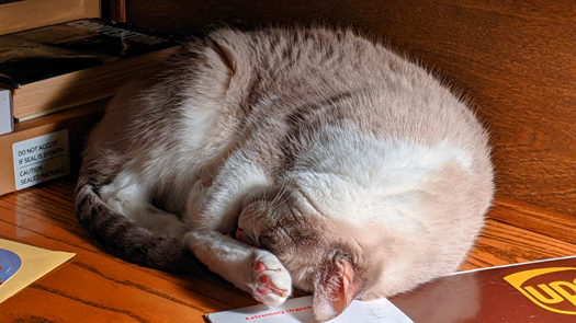 And two more from everyone's favorite napping spot- on the desk in the study underneath the lamp.