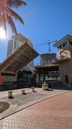 As we approached the railroad bridge, it came down to allow one of the Brightline commuter trains to pass over it, and I got to a good position just in time to make a movie. |