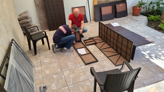 On the other end of the kitchen, near the table where we work, is the door to our outside patio and side garden. The Barallas have taken their patio furniture and grill with them, so we found a patio set over at Pycca so we will have a place to sit and eat outside.