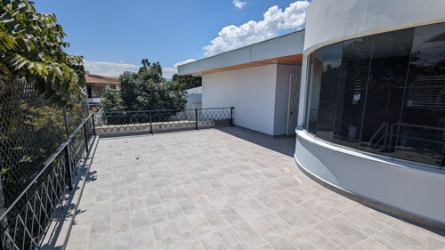 One problem that we had our architects fix even before we came down this first time as owners was to repair and re-tile the rooftop deck. There were some places where it was leaking, and we thought the problem should be fixed immediately. Here are two views taken on the rooftop patio: