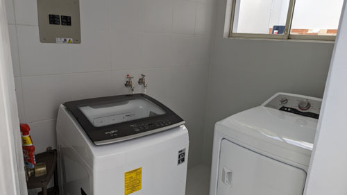 Outside the kitchen, between the kitchen and the carport, there is an outbuilding with two rooms. One is the laundry room and the other is the maid's quarters (with its own bath).