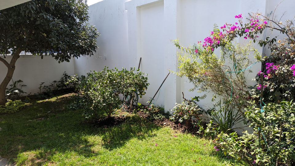 While we are on the first floor, I should mention that we have a small side yard, with some flowers, an avocado tree, and a couple of lemon trees. It is a little unkempt at the moment, as we haven't arranged for anyone to maintain it. Here are some of the plants and flowers in this side yard: