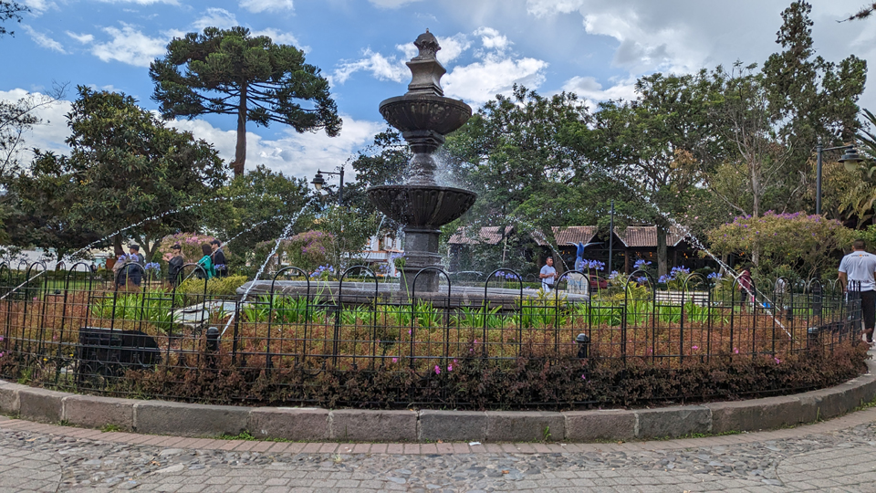 The second part of the walk varies. Sometimes, we follow Francisco de Orellana to the left and continue along it to Parque Cumbaya. Other times, we turn to the right to follow a different, parallel street down to the park (Garcia Moreno). Oftentimes, we end up at the park, where it is fun to sit and people-watch (both day and night). Other times, we continue further down Francisco de Orellana- when we are going to Colineal, our favorite burger place, Paccari Chocolate, or the Royal India Restaurant.