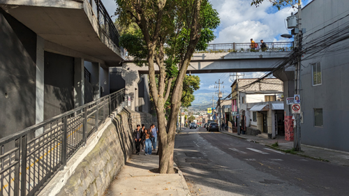 Anyway, the overpass also offers good views out over the Tumbaco Valley, and you have seen many of those before. On one of our walks, I made a movie as I crossed the bridge, and it will show you exactly what the walkway is like as it takes us all the way over to Francisco de Orellana. You can use the player at left to watch it.