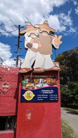 Walking down the street to the east, the University was on our right and shortly we came to the Plaza Pampite, another small shopping mall. This one was three stories and had a number of restaurants and some other shops. We haven't eaten at any of them yet, but when we run out of places to try closer to the house, I am sure we will.