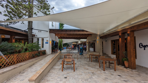 Our last stop on this short walk is the Centro Comercial La Esquina. On our househunting trip here, we found a very good German bakery. There are a couple of other bakeries and numerous other shops.