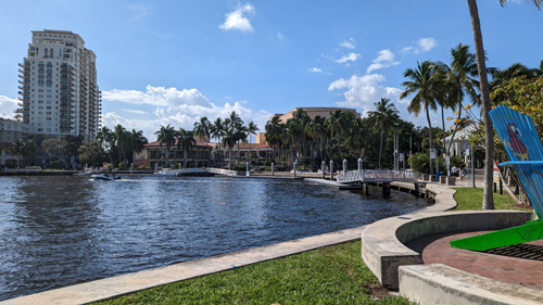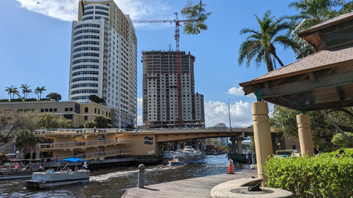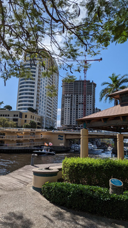 We continued walking towards the end of the Riverwalk, and near Old Fort Lauderdale we could look across the river and see both the Regatta and Harbour at New River. In that picture, that is the FEC Railway bridge across the New River. It only comes down when necessary to allow a freight train or the Brightline to cross.