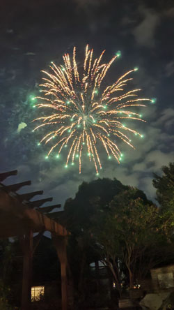 We all went out to dinner at a restaurant near Nancy's house, and then we went there to watch the fireworks that are set off on the golf course right behind her house.