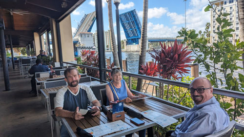 We had another visitor this trip, too. Our cat sitter, Lynne Richardson, had come to Miami to visit her good friend Osama, and she took the Brightline up to Fort Lauderdale to have lunch with her other bestie, Ron Drew. The four of us went to a restaurant right beside the Intracoastal Waterway, just north of Oakland Park Blvd.