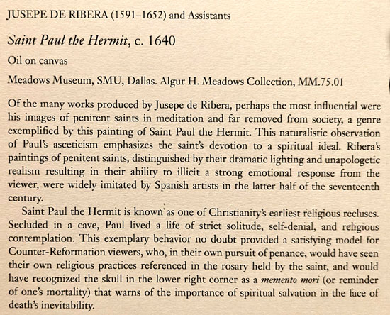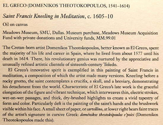 This exhibition at the Meadows is actually an exhibit that is making the rounds of museums worldwide; it is curated from combining the works of the artist, many from the Meadows itself, into a single, comprehensive, traveling exhibit. I won't try to describe the exhibit or the artworks myself, but will rather show you the actual descriptions posted throughout the exhibit.