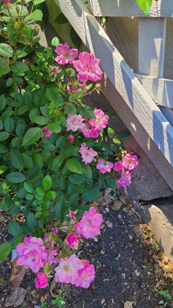 In the next group of pictures, the first red rose is growing by my garage, but all the rest are from Fred's house: